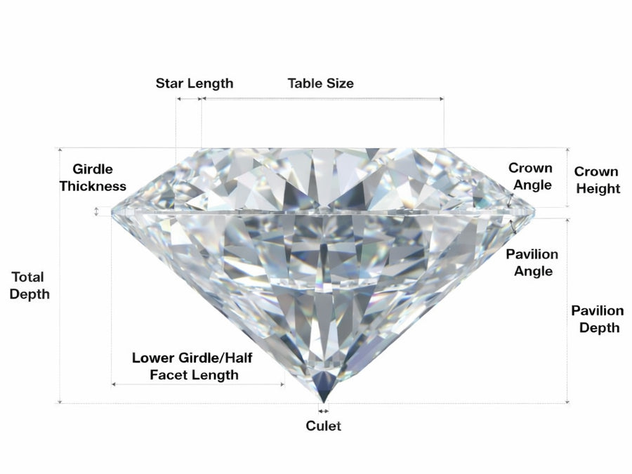 Cut describes the quality of a diamond's design through its shaping and faceting. The three optical effects of the gemstone depend on this particular element.